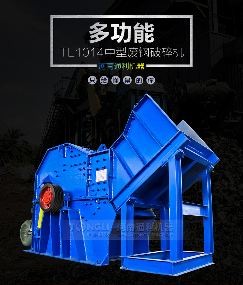 河南通利1014金属破碎机由主机一台,生产线一条,磁设备一台,输送机一台,电机一台组成,厂家可为您提供系列化的金属破碎机和整个破碎工厂的工艺装配配置。用于破碎轻薄料如汽车外壳混合废金属,包括金属打包块的破碎,机器通过不断、化以及经验的积累,掌握了设计和制造金属破碎机的技术诀窍,从而设备长期可靠地低成本运行。