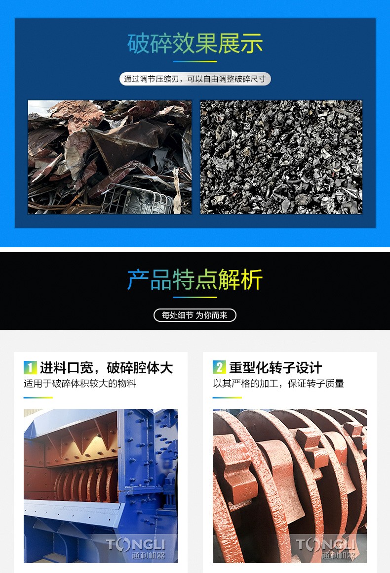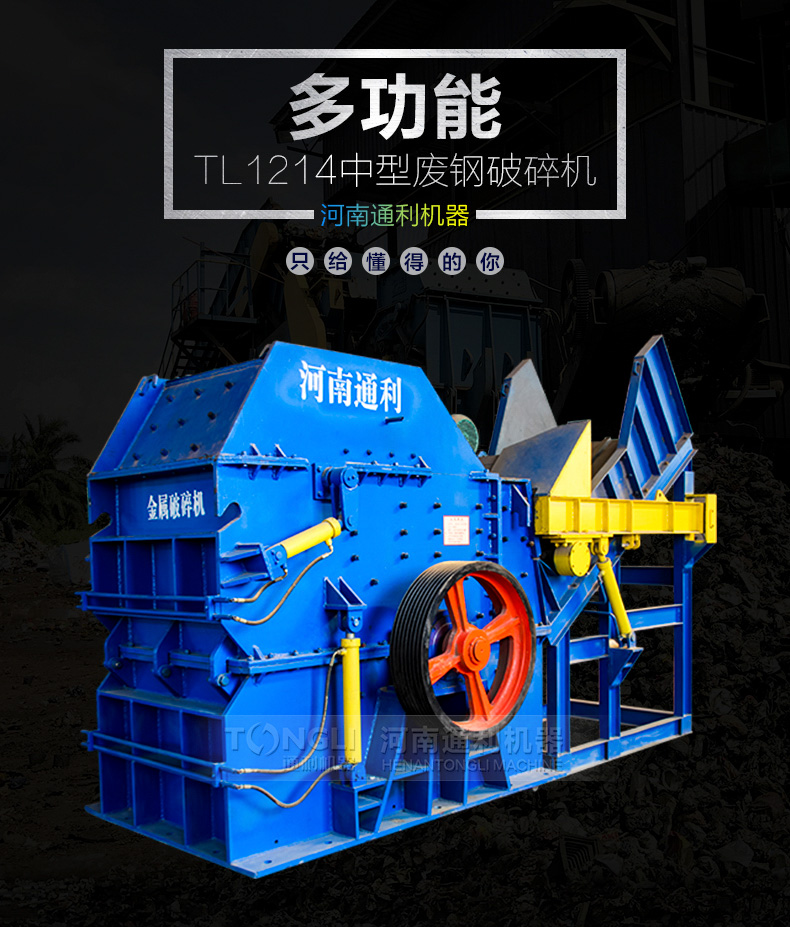 河南通利1214金属破碎机由主机一台,生产线一条,磁设备一台,输送机一台,电机一台组成,厂家可为您提供系列化的金属破碎机和整个破碎工厂的工艺装配配置。用于破碎轻薄料如汽车外壳混合废金属,包括金属打包块的破碎,机器通过不断、化以及经验的积累,掌握了设计和制造金属破碎机的技术诀窍,从而设备长期可靠地低成本运行。